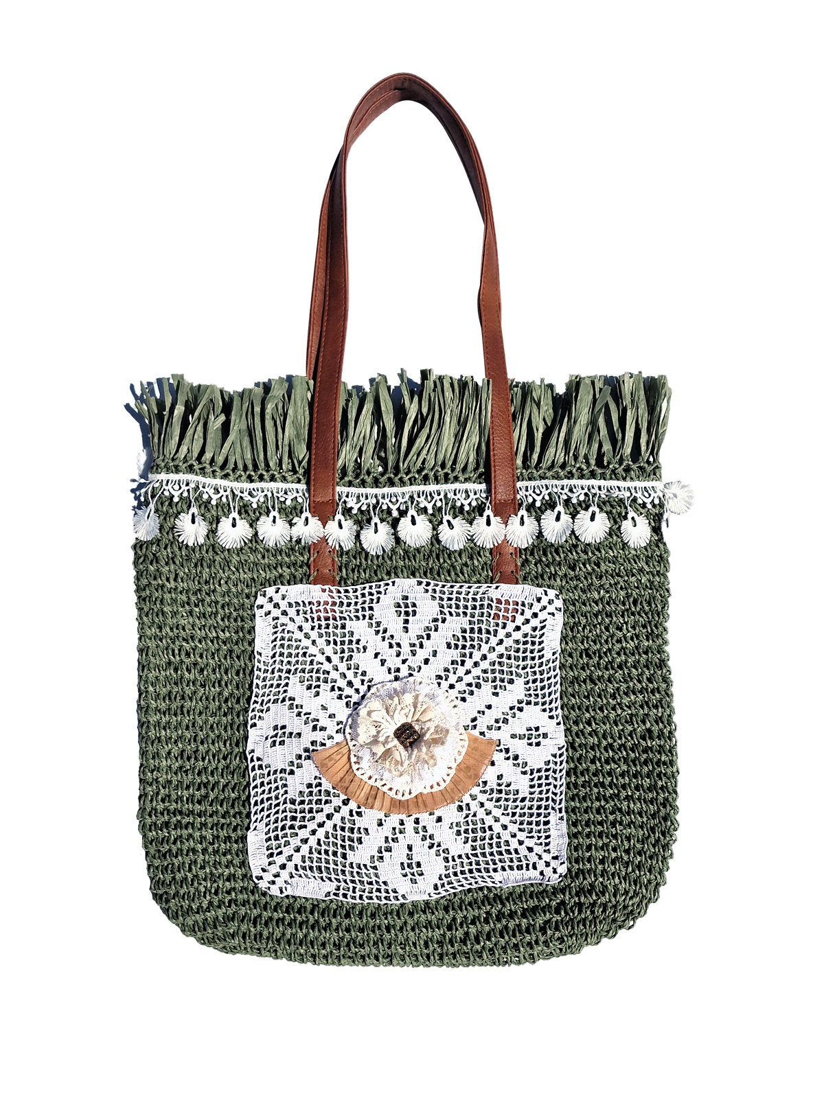 Ceea ce o face cu adevarat speciala este faptul ca este personalizata cu un design unic handmade, realizat folosind macrame si dantela. Este alegerea perfecta pentru a accesoriza atat o rochie lunga si feminina, pentru un look boem si rafinat, cat si o pereche de jeansi si un top, pentru o tinuta dinamica si practica.