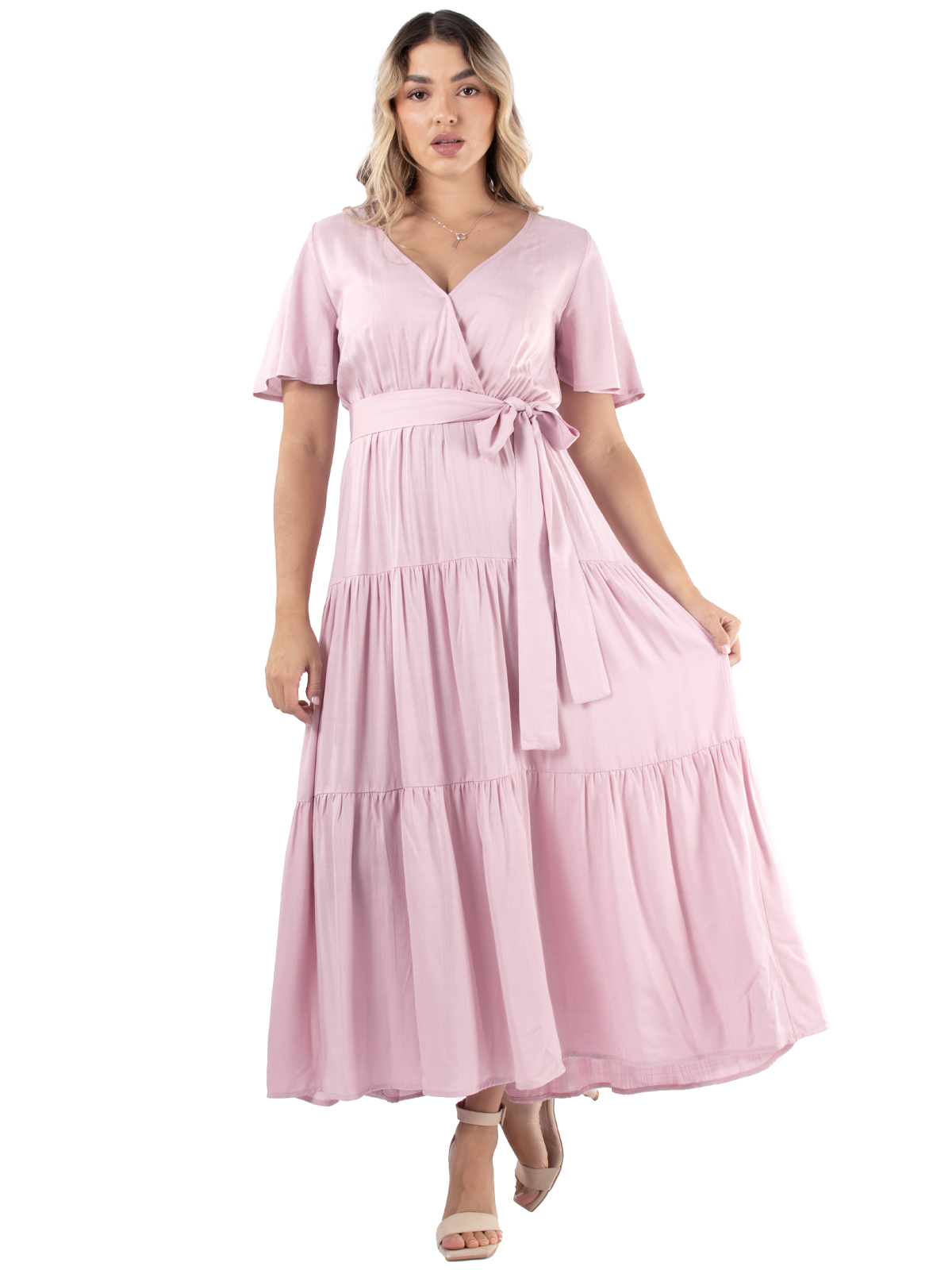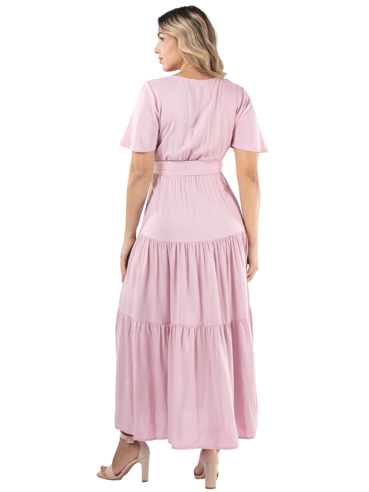 Rochie eleganta si rafinata, cu decolteu in V, petrecuta in zona bustului, cu talie incretita, pe elastic. Are un cordon detasabil, care subliniaza talia si da rochiei un aspect feminin si deosebit. Maneca este scurta. Materialul este fluid, placut la purtat si se calca usor. Disponibila in mai multe culori (fucsia, verde, mov, beige si roz pudra). Rochia Paris este comfortabila, are un stil atemporal si este alegerea potrivita pentru a fi purtata atat la un eveniment special, cat si la o plimbare relaxanta sau la o iesire la teatru.